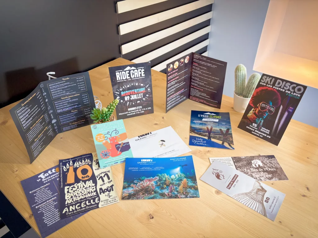 De la carte de visite au grand format, nous vous accompagnons dans la conception et l’impression de tous vos supports papier, avec des solutions adaptées à chaque usage, de la création à la finition.