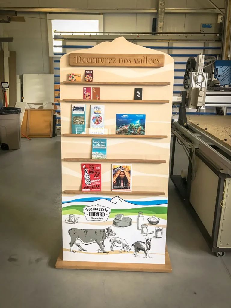 Du panneau décoratif sur-mesure au mobilier personnalisé, nous concevons et fabriquons des aménagements et des dispositifs de présentation pensés pour structurer vos espaces et valoriser votre image, de la création à l’installation.