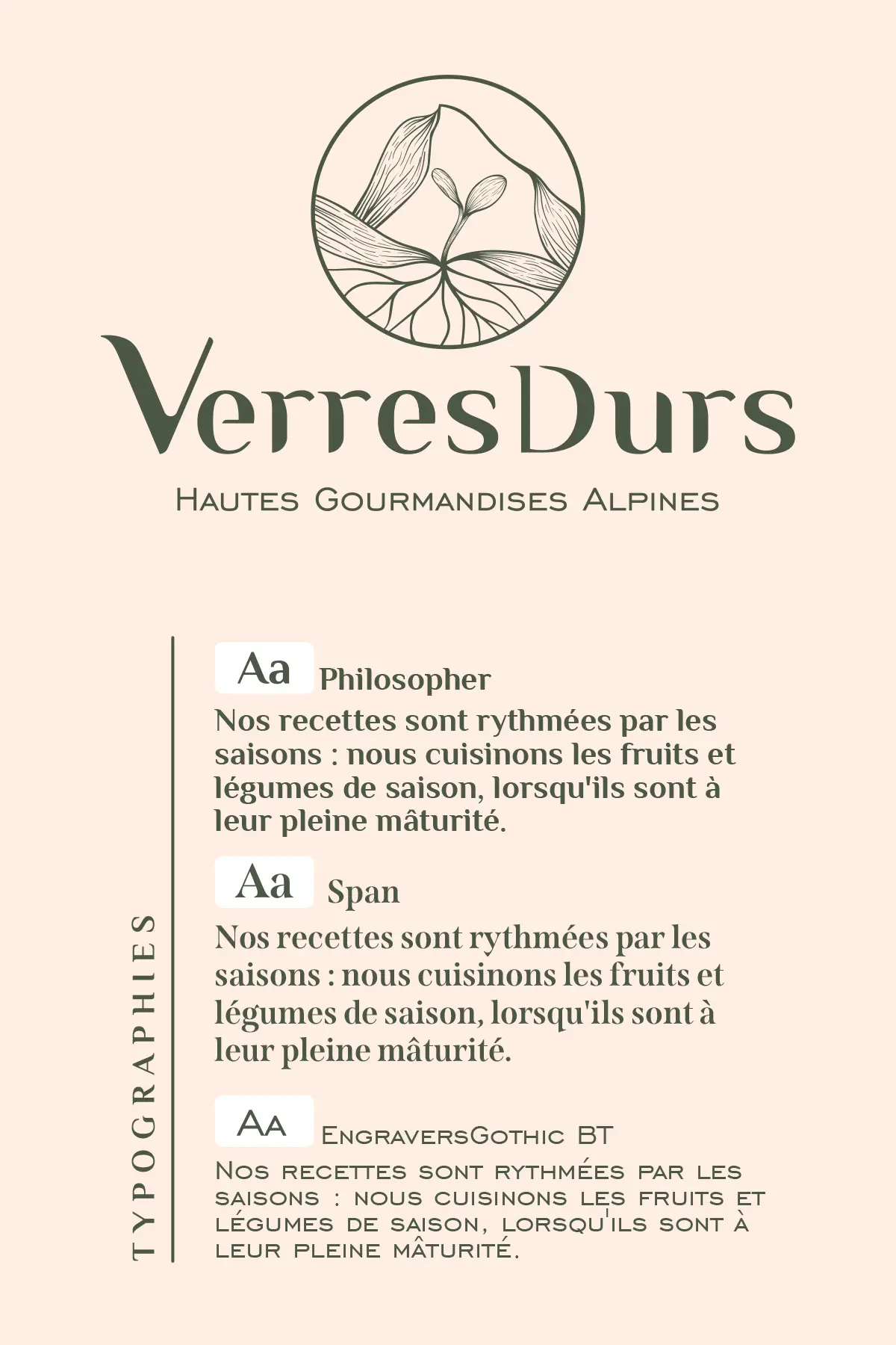 Un univers graphique sensible et épuré, à l’image d’une cuisine alpine engagée, sincère et profondément gourmande. Un projet où le goût, le territoire et le geste artisanal se rencontrent.